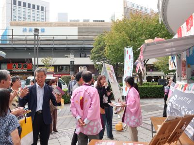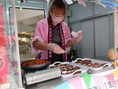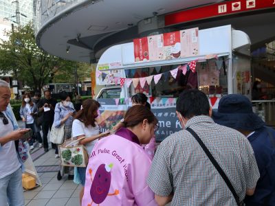 10月13日(月)の豆の日に先立ち、多くの方々に豆料理の魅力を知っていただき、豆の日の認知度も高めたいという思いから、10月10日(金)に当協会の主催でJR有楽町駅前の東京交通会館にて豆料理の試食宣伝を実施しました。