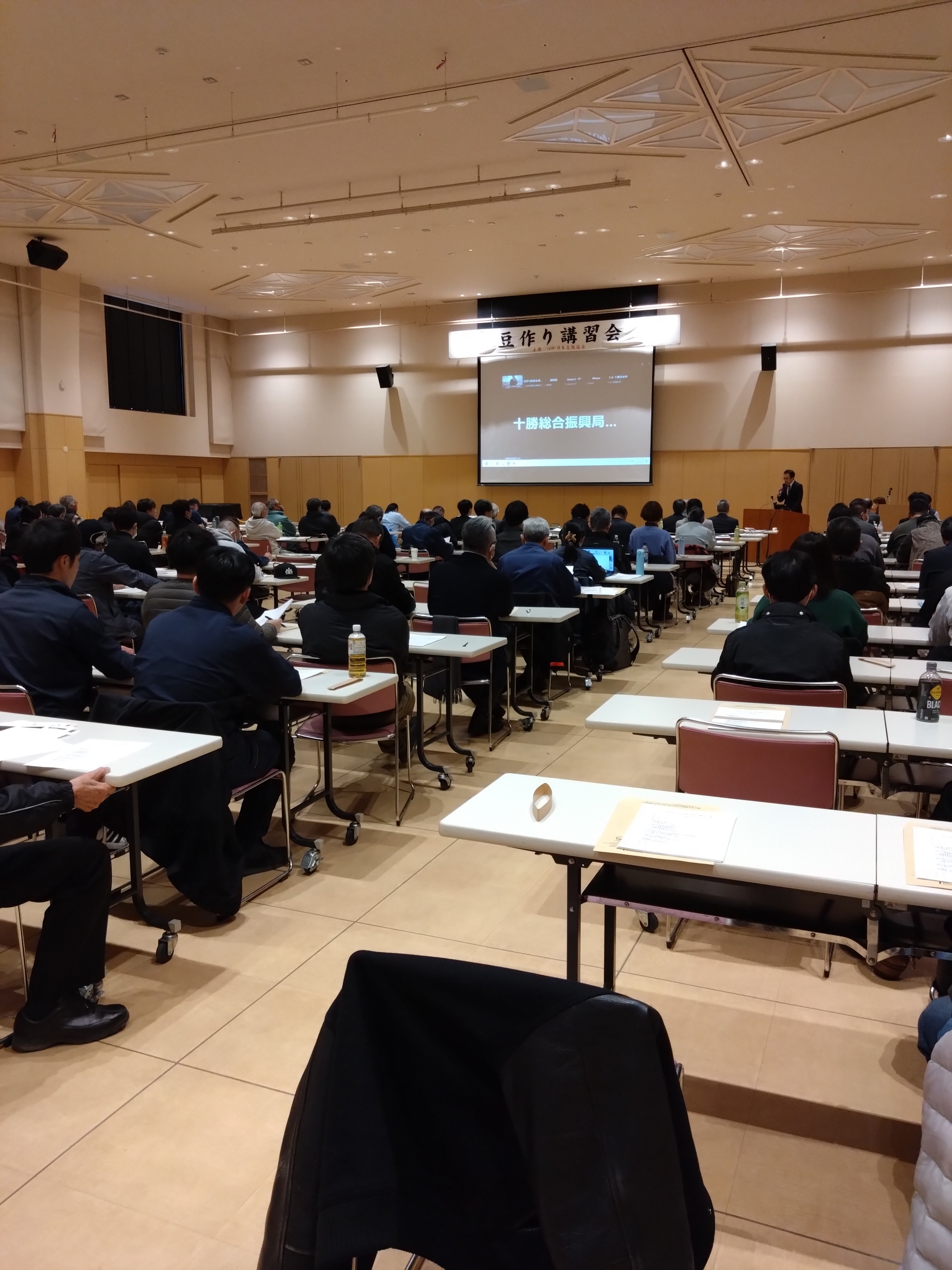 実需者ニーズに応える安定的な豆類(小豆・いんげん)の生産を進めるための「豆作り講習会」(後半)を、北海道北見市端野町公民館(2月26日)及び芽室町めむろーど(2月27日)において開催しました。それぞれの会場では、道庁農政部の司会進行のもと、主催者を代表して日本豆類協会松尾常務理事から御挨拶した後、